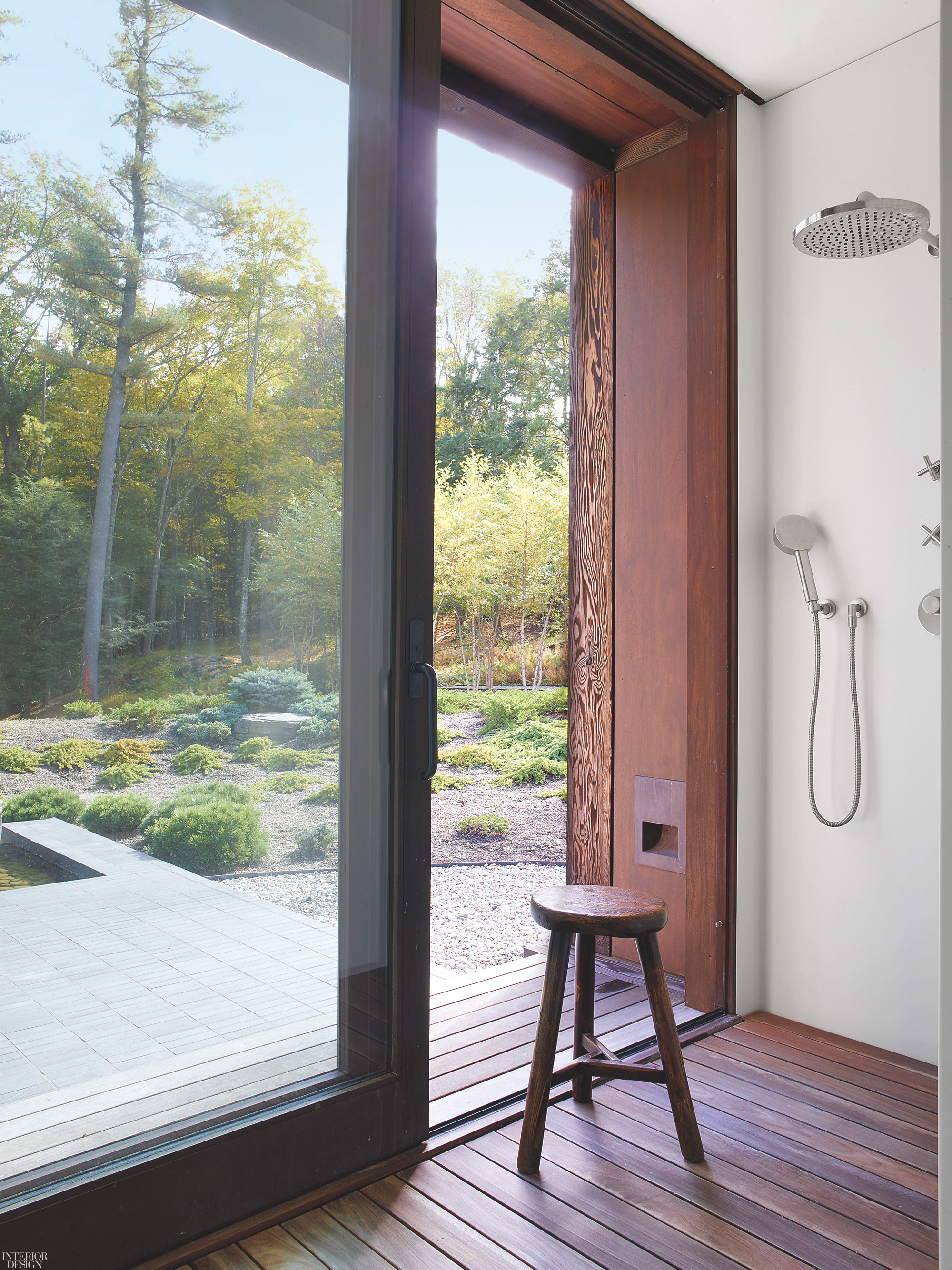 In Japan, the ritual of bathing is less about hygiene per se than it is about relaxation, with nature ideally playing a starring role—as it does at an Asian-influenced master suite in Pound Ridge, New York. Interior Design Hall of Fame members Calvin Tsao and Zack McKown describe their concept as “outside in and inside out,” which accounts for the 12-foot-wide picture window in place of a mirror above the bathroom vanity.